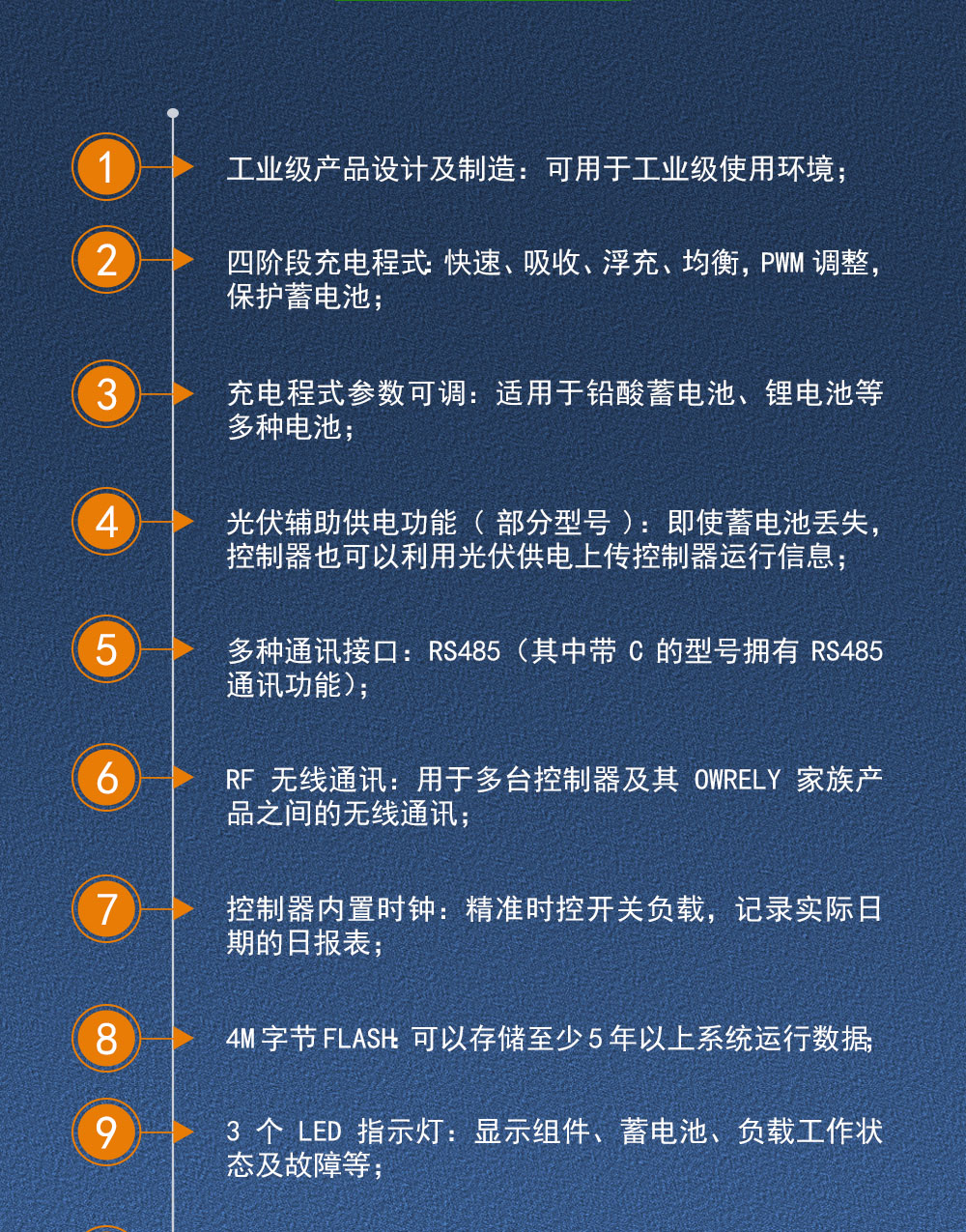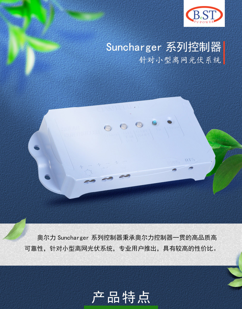 | 奧爾力Suncharger系列控制器秉承奧爾力控制器一貫的高品質(zhì)高可靠性,針對小型離網(wǎng)光伏系統(tǒng),專業(yè)用戶推出,具有較高的性價比。 |