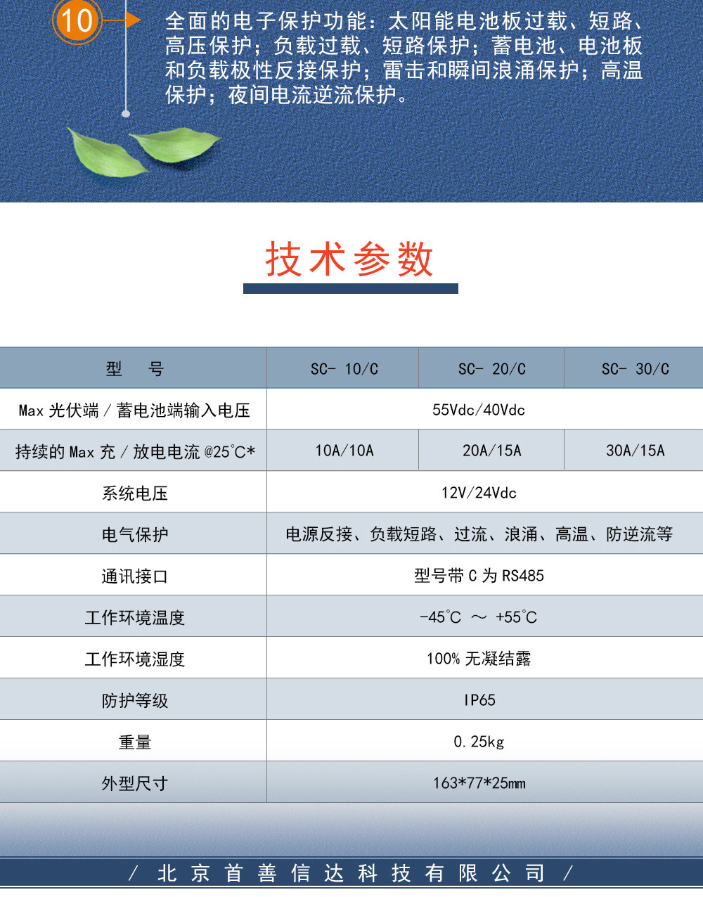 電子保護功能:太陽能電池板過載、短路、高壓保護;負載過載、短路保護;蓄電池、電池板和負載極性反接保護;雷擊和瞬間浪涌保護; 高溫保護;夜間電流逆流保護; |